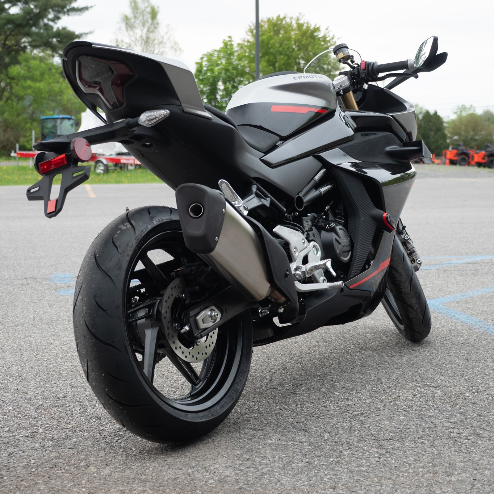 Is the CFMOTO 450SS comfortable for longer rides to the Adirondacks? Yes, despite its aggressive sportbike styling, the 450SS features a manageable 31.3-inch seat height and dual-balance shafts that significantly reduce engine vibration. This makes it much more comfortable for a ride up to Lake George or through the Wilton area than high-vibration single-cylinder bikes.