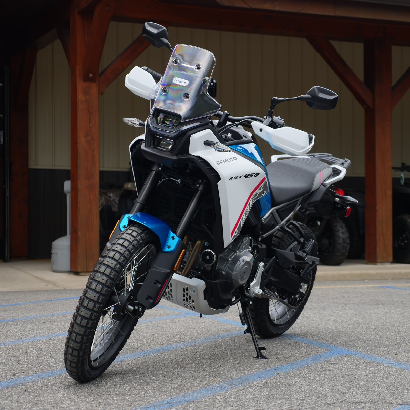 Is the CFMOTO Ibex 450 comfortable for highway touring? Yes, the Ibex 450 is engineered for comfort over long distances. The dual counterbalancers virtually eliminate the high-frequency vibrations common in smaller engines, while the one-hand adjustable windshield allows you to dial in your wind protection as you transition from city streets to open highways like I-88.
