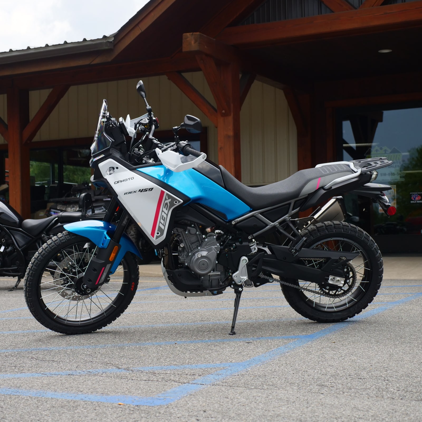 Can the Ibex 450 handle a passenger and luggage for trips to Wells? Yes. The Ibex 450 is equipped with a reinforced rear subframe specifically designed to carry luggage racks and panniers. Additionally, the KYB rear suspension is fully adjustable, allowing you to increase the preload to maintain a level, comfortable ride when you’re loaded down for a camping trip.