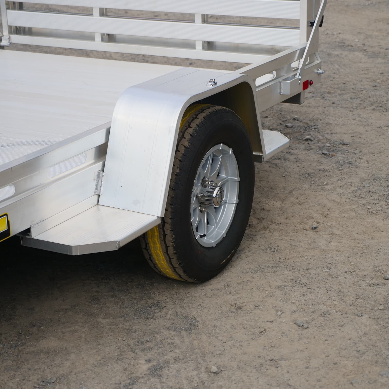 Tires: 14″ Radial tires (ST205/75R14) mounted on premium aluminum wheels for a sleek, corrosion-resistant look.