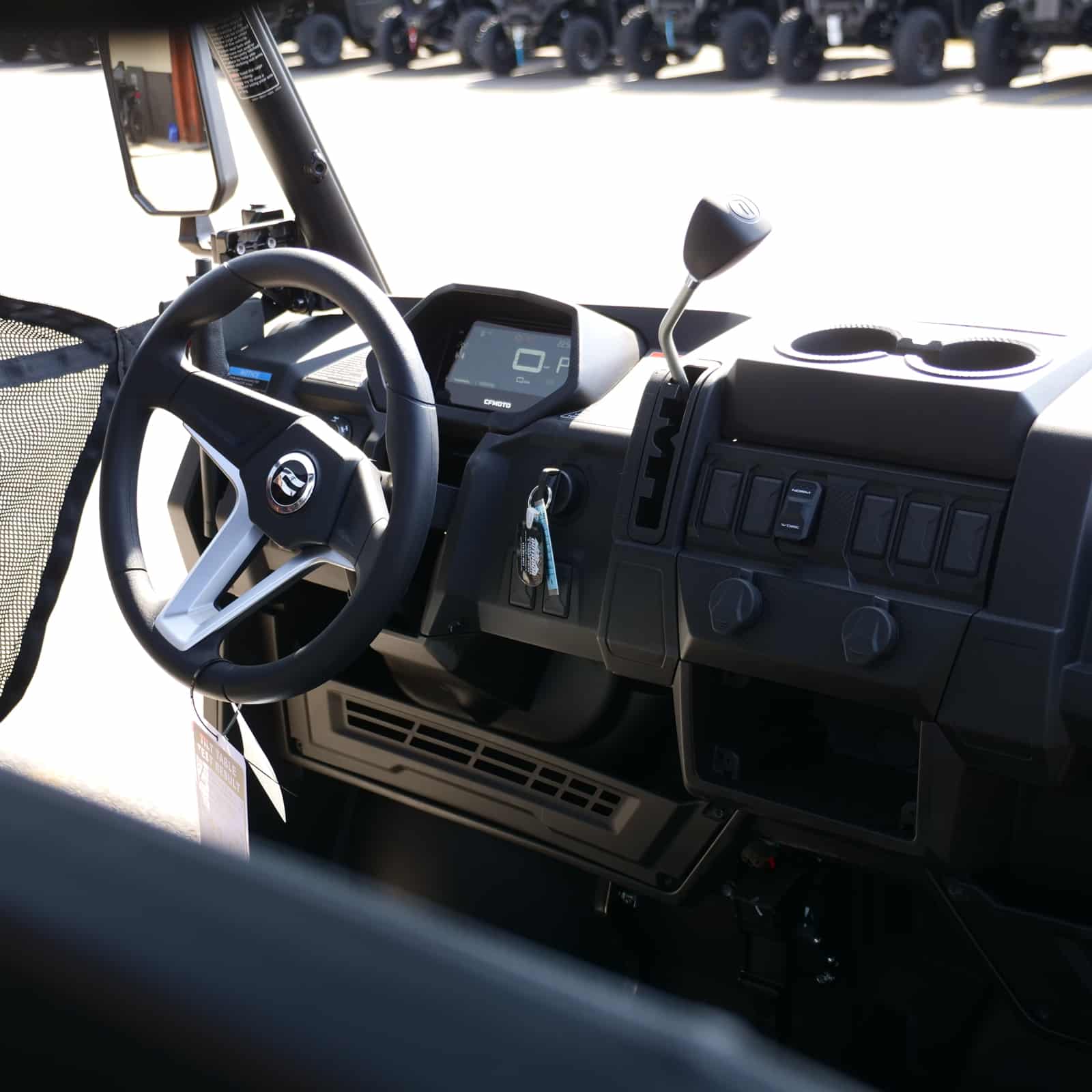 Safety & Tech: Digital multi-function gauge, ROPS certified cage, and side mirrors